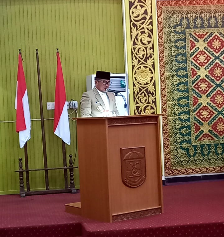 Ketua DPRD Pelalawan H Syafrizal SE memimpin jalannya rapat paripurna tersebut dengan didampingi Wakil Ketua II Tengku Azriwardi dan turut pula dihadiri Bupati Pelalawan H Zukri bersama Kepala Organisasi Perangkat Daerah (OPD) di lingkungan Pemkab Pelalawan dan 33 anggota DPRD Pelalawan.